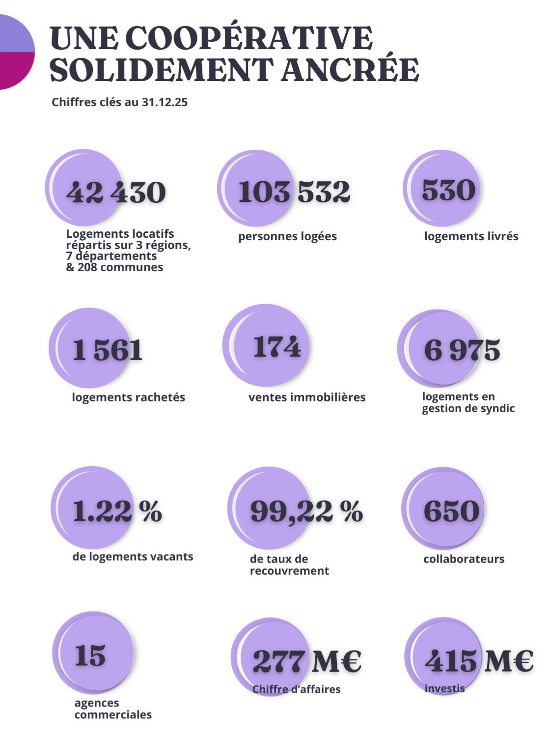L'année 2025, marquée par de fortes tensions sur le logement et un contexte économique contraint, a illustré cette constance. Face aux mutations profondes du secteur, la Coopérative a fait le choix de consolider l'existant, de transformer plutôt que subir et de préparer l'avenir sans perdre le cap. Une ligne de conduite fidèle à son ADN.